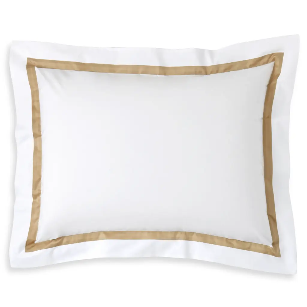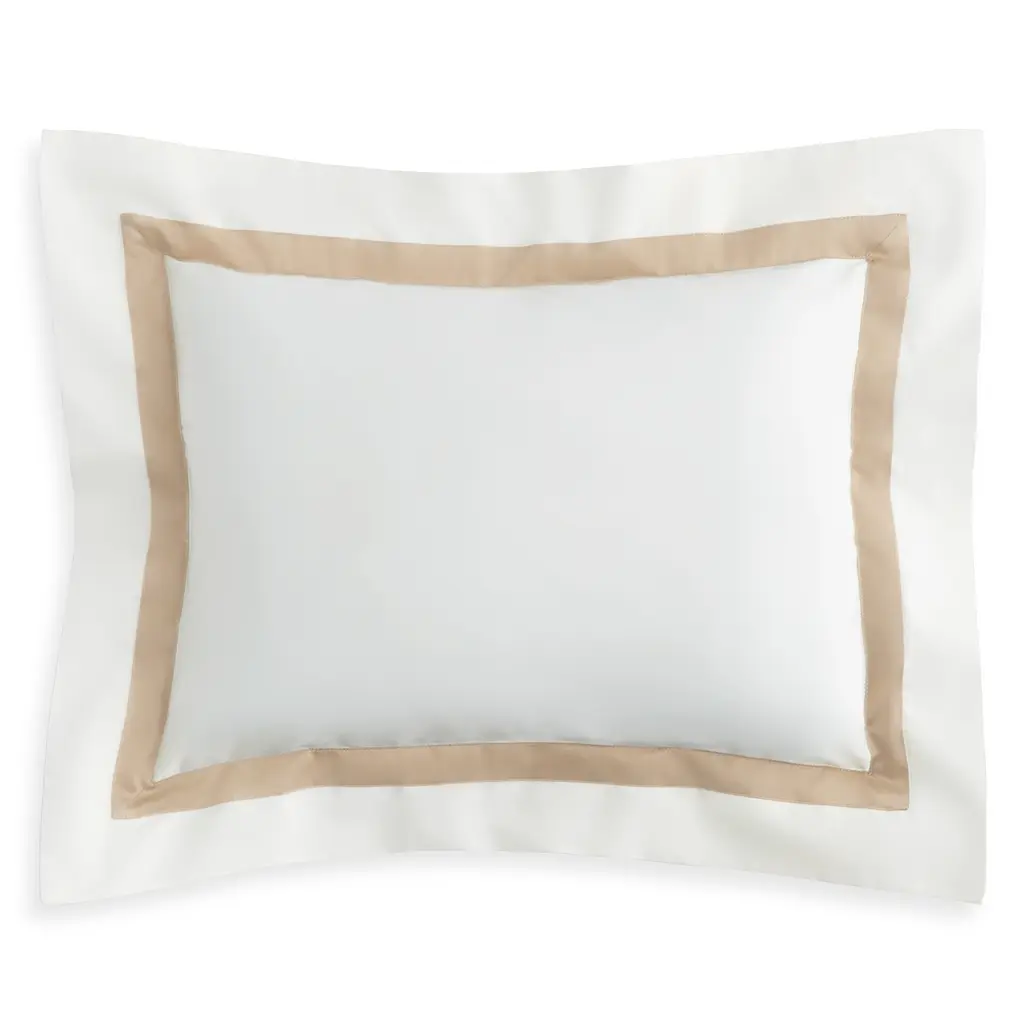 Crafted from fine Egyptian cotton, Nocturne bedding completes an opulent or traditional space with its classic colors and luminous sheen. Shams are accented with a tonal ribbon border.