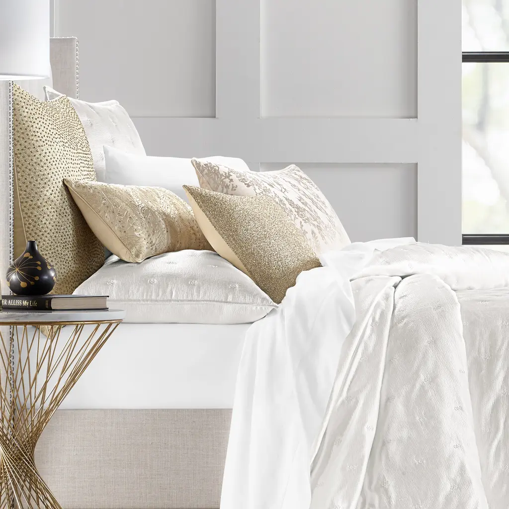 Exclusively ours, Hudson Park Collection's Nouveau Quilted bedding layers soft, lustrous essentials with charming embroidered details.