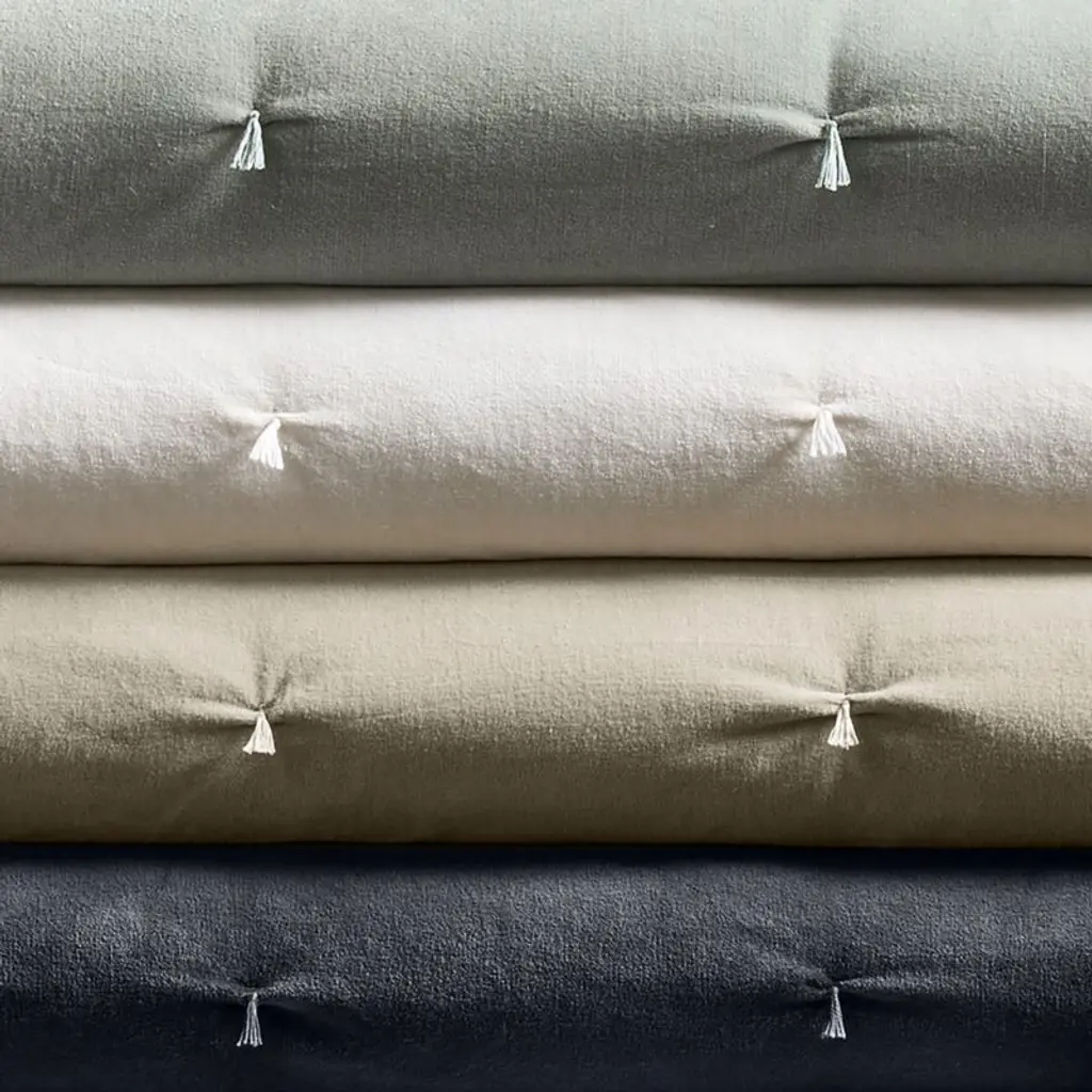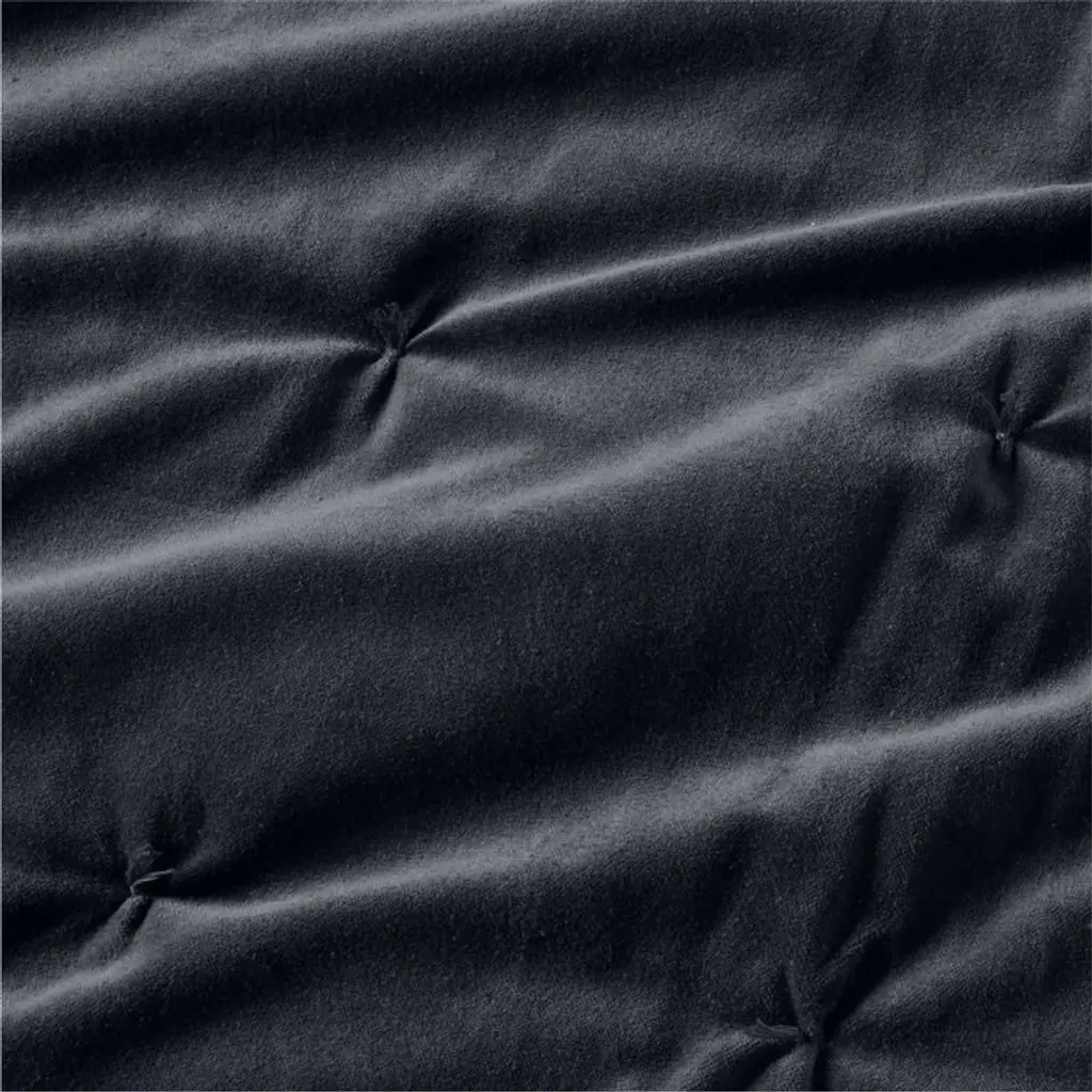A beautiful blend of linen and organic cotton weaves our uniquely textured velvet bedding. Slubbed for a matte, understated glamour that's oh-so-modern, the velvet pillow sham dresses up the bed with coziness and color. Skilled artisans tuft the deep blue sham by hand, finishing the quilted cover with a grid of petite tonal tassels. Layer with our other midnight navy bedding for a serene monochromatic look or with our white sheets to add crisp contrast.Bed pillows also available.