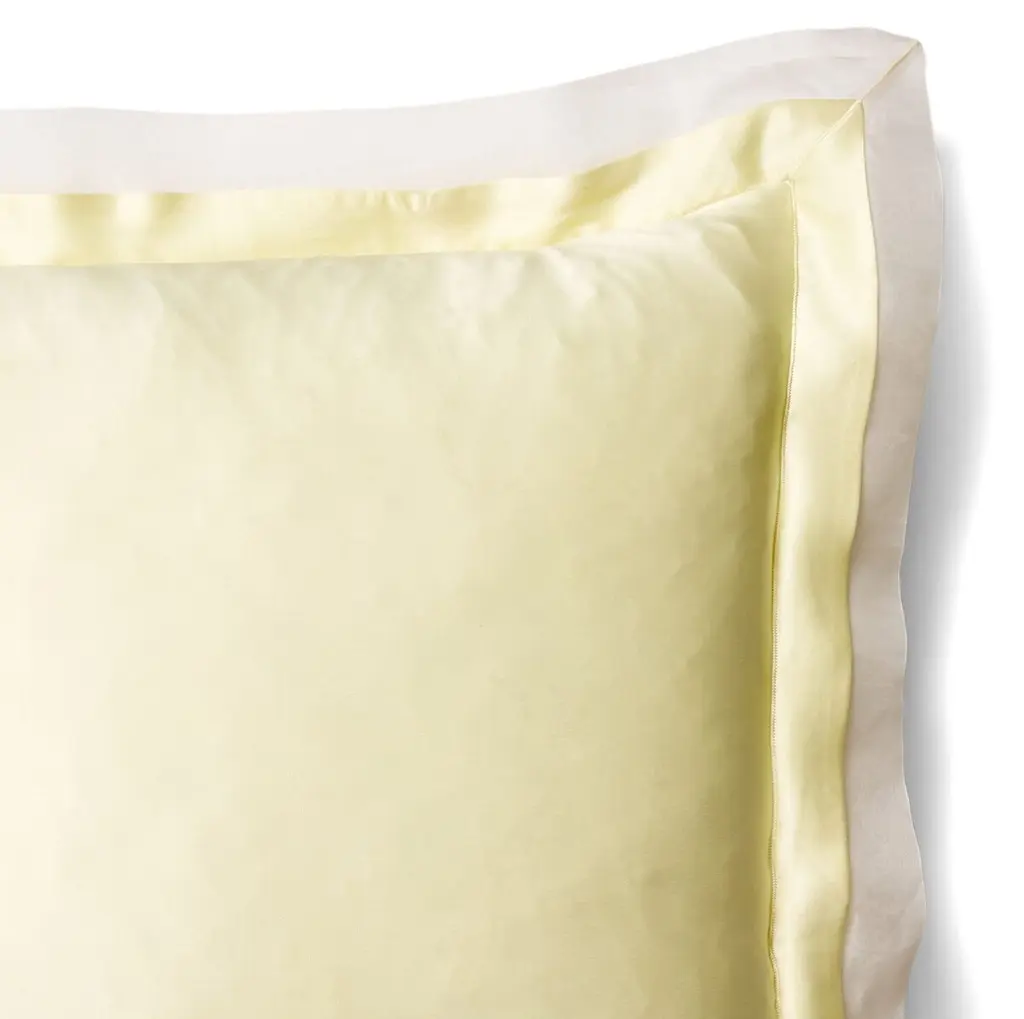 This elegant Euro sham is rendered in shimmery, sumptuous, lemon-hued silk, and finished with a double flange of silk and white organza.