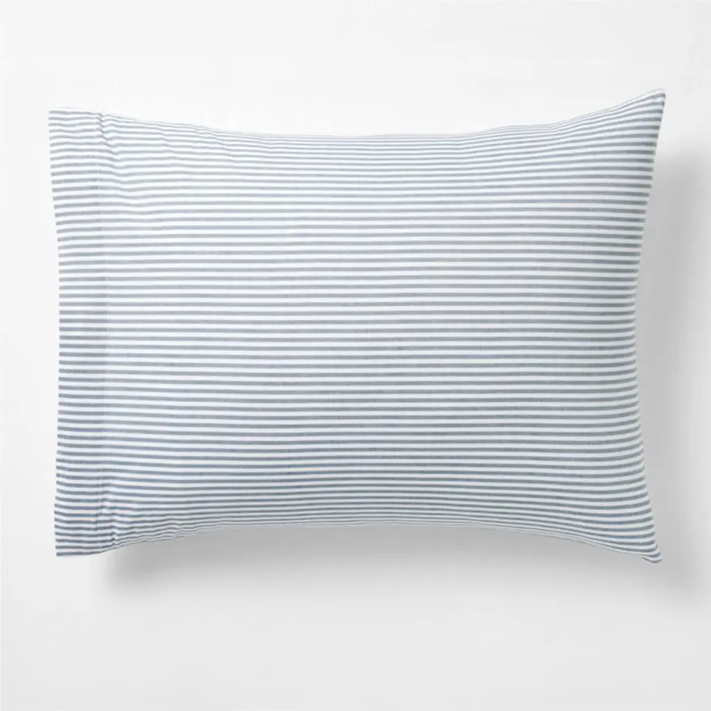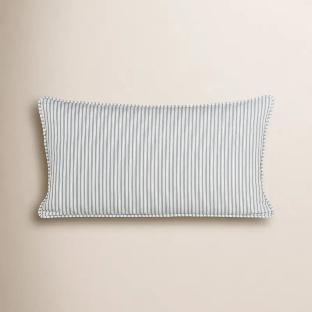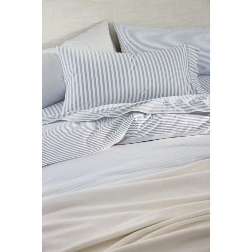 Inspired by menswear, our Oxford Shirting collection brings a touch of tailoring to the bedroom. This sham patterned with double pinstripes in light indigo blue and crisp white reverses to ticking stripes in the same classic palettejust flip the pillow to keep the look fresh. Mix and match the washed organic cotton pillow sham with the Oxford Shirting duvet cover and sheet set or our other striped bedding to make a well-dressed bed.Bed pillows also available.