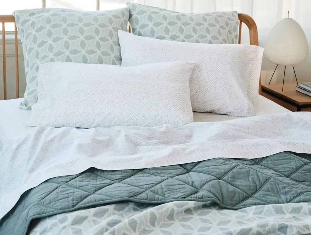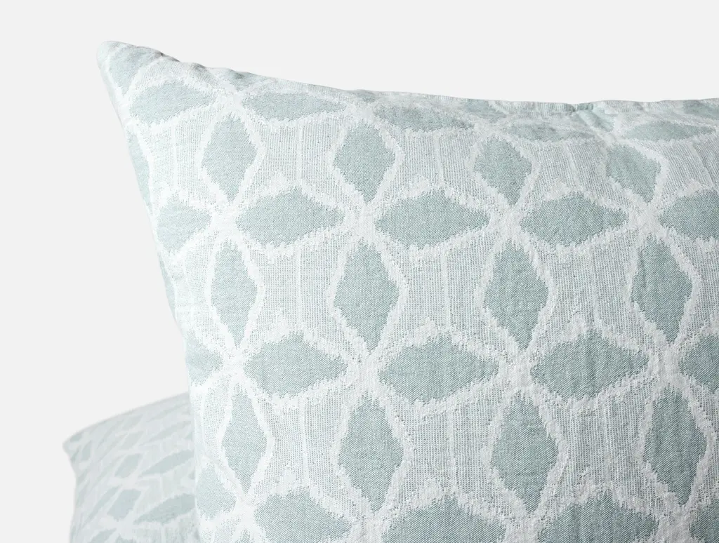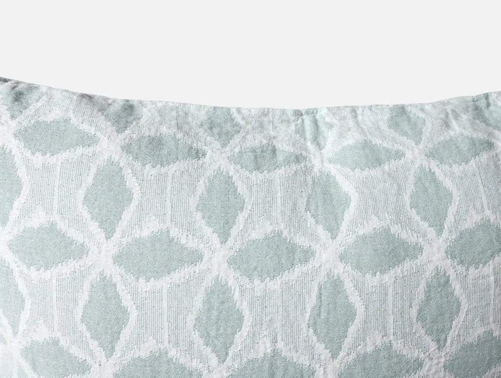 The Palomar Organic Sham brings intricate design and exceptional comfort to your bedding. Made from 100% GOTS certified organic cotton in Portugal, it features a matelassé weave inspired by traditional Japanese ikat patterns. This reversible sham offers a geometric design on one side and a mirrored color palette on the other, allowing for versatile styling. Thoughtfully finished with a clean knife-edge and an envelope closure.