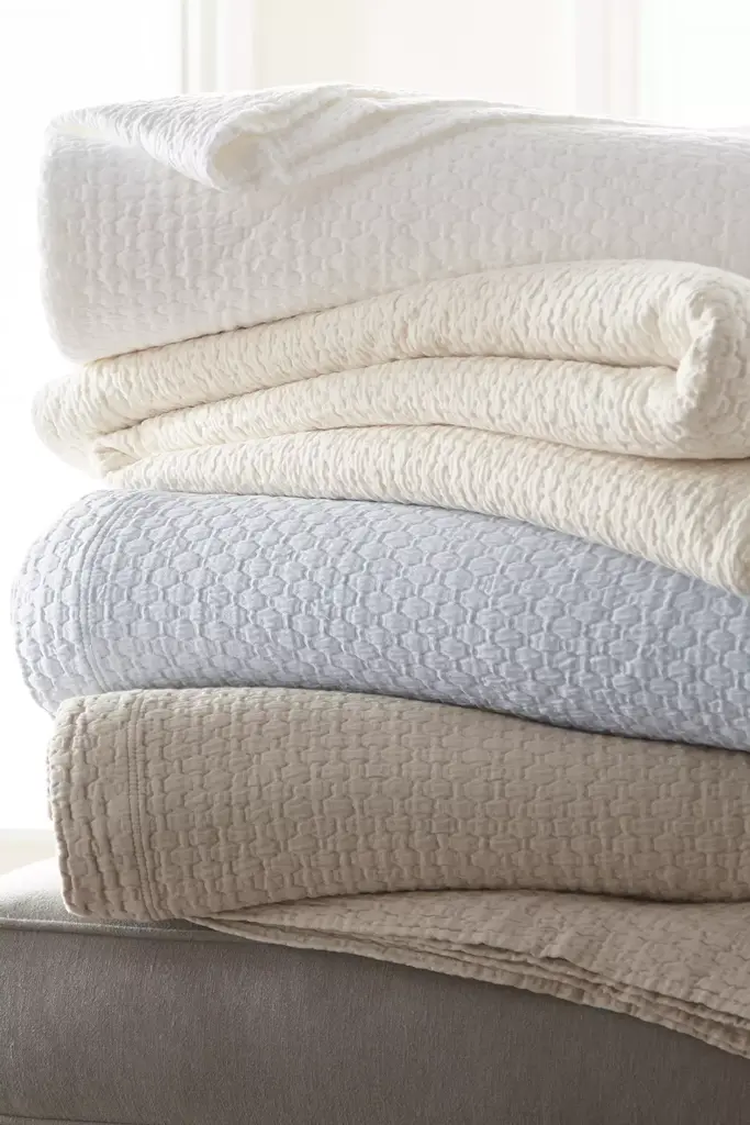 Our Juliet Matelass Shams are a long time favorite. Its textured basket weave design and garment-washed finish make it soft and sumptuous. Available in five favorite neutrals to go with all your Peacock Alley bedding.\- 50% Linen / 50% Cotton with 100% Poly Fill Features a 2" diamond quilted design Reverses to a 200 thread count percale sheeting fabric\- Sold individually\- Envelope Closure\- Machine wash cold, gentle cycle. Do not mix colors. Do not bleach or use fabric softener. Tumble dry low, remove promptly. Warm iron if needed. May be professionally cleaned.\-Imported from Portugal #### *Dimensions*\- Standard - 20" x 26"\- King - 20" x 36"\- Euro - 26" x 26"