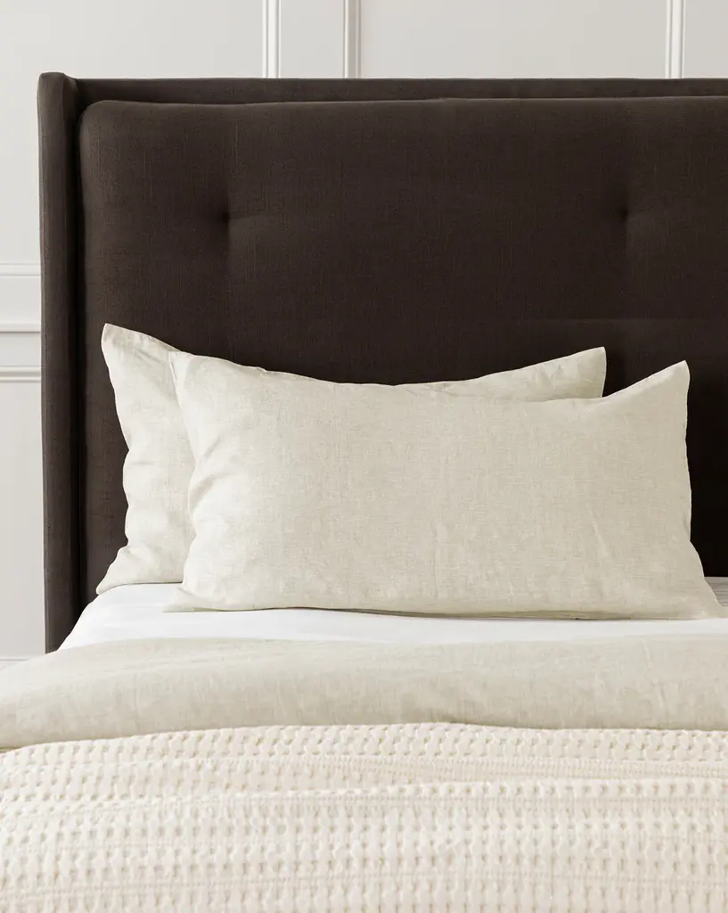 Subtle and soft, the Penelope Beige Linen Shams add a warm and inviting presence to bedding without overpowering the other components of the room. This elegant tan sham is made from 100% linen.