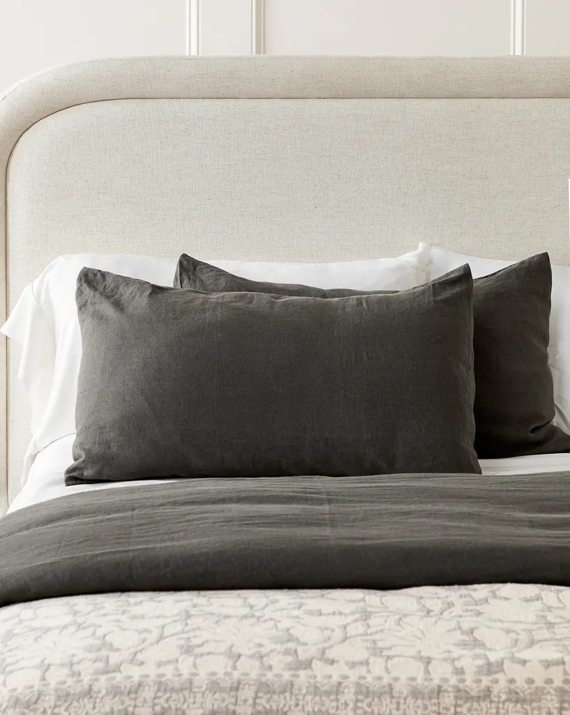 Subtle and soft, the Penelope Gray Linen Shams add a neutral and inviting presence to bedding without overpowering the other components of the room. This elegant gray sham is made from 100% linen.