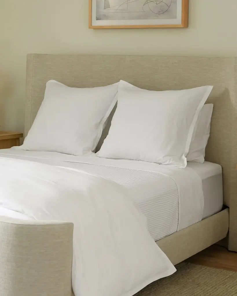 A must-have for a well-dressed bed, thissquare euroshamdelivers on depth and decoration. We recommend two for a Queen and three for a King. Crafted in Portugal from 100% premium, certified long-staple Egyptian cotton our percale is lightweight and durable with a crisp finish that only gets better withtime.
