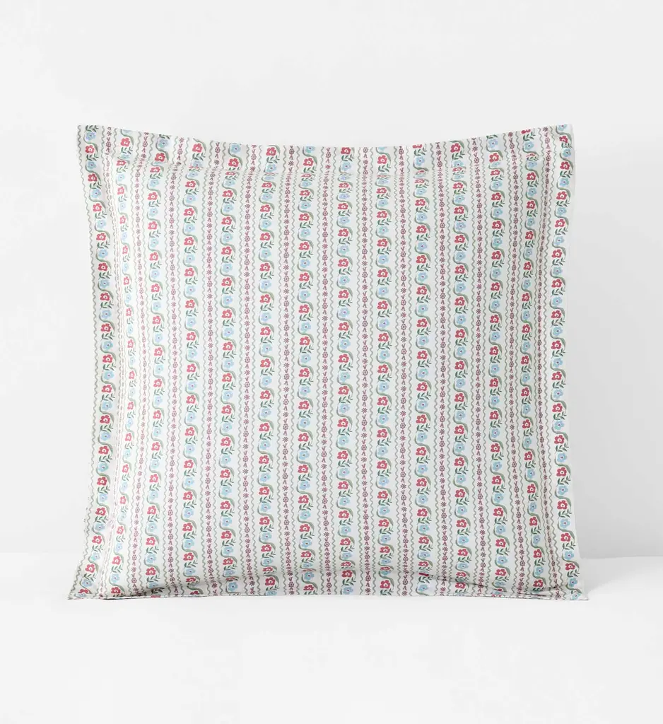 In shades of mauve, cornflower blue, and sage, Delphine's illustrated, vintage-style blooms form tidy stripes, a perfect pairing for several patterns in our bedding collection. Complete the set by layering these plush shams with coordinating sheets and accent pillows (sold separately). Our breathable percale bedding collection is an excellent choice for year-round use. Part of our Rifle Paper Co. x The Company Store collection.