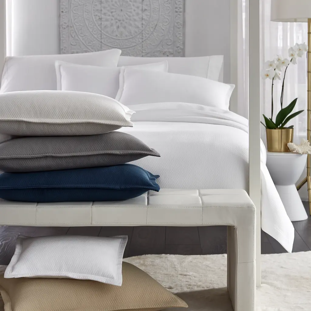 Crafted in soft cotton matelassé with a subtle lined texture, the SFERRA Perrio collection pairs beautifully with sateen or percale sheeting to create a sumptuous and luxurious bedding ensemble.