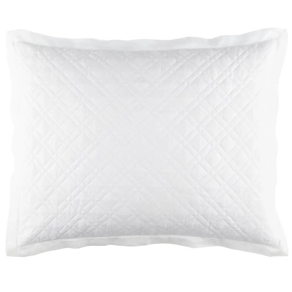 Demonstrate artisanal savoir-faire with the Petra Bedding Collection from Matouk, featuring a classic matelassé diamond design and subtle sheen.