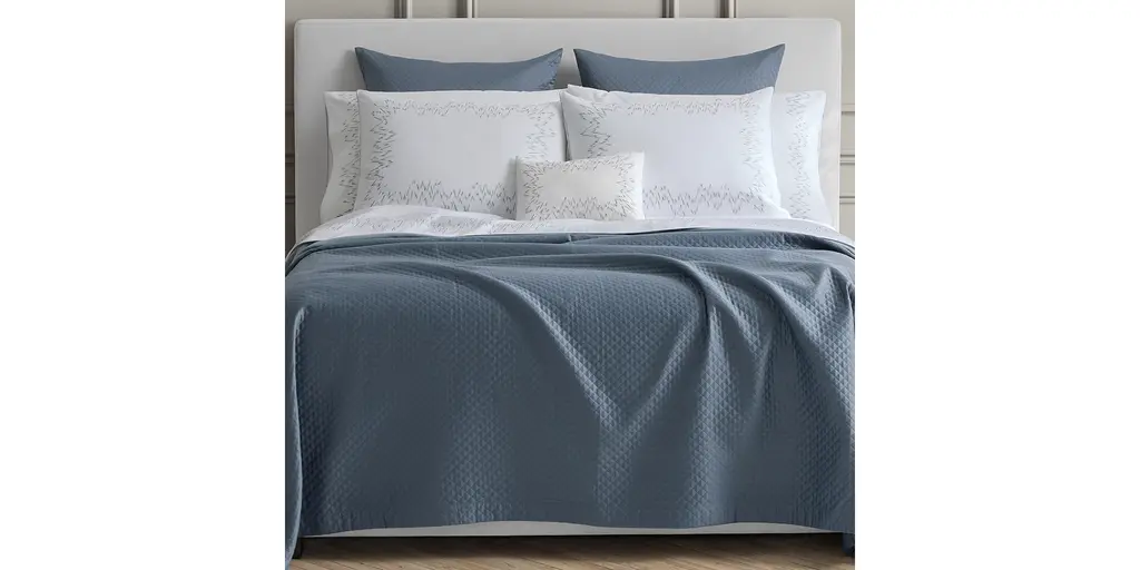 Demonstrate artisanal savoir-faire with the Petra Bedding Collection from Matouk, featuring a classic matelassé diamond design and subtle sheen.