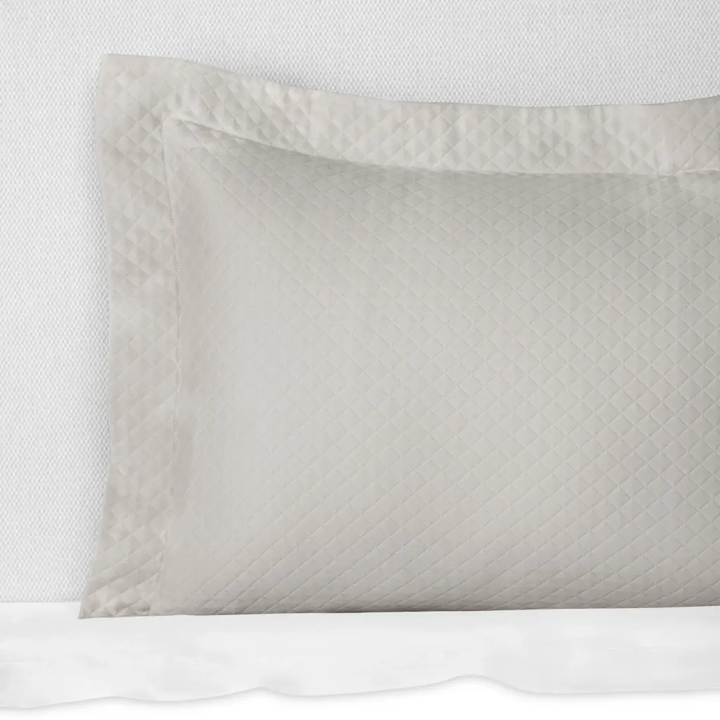 Demonstrate artisanal savoir-faire with the Petra Bedding Collection from Matouk, featuring a classic matelassé diamond design and subtle sheen.