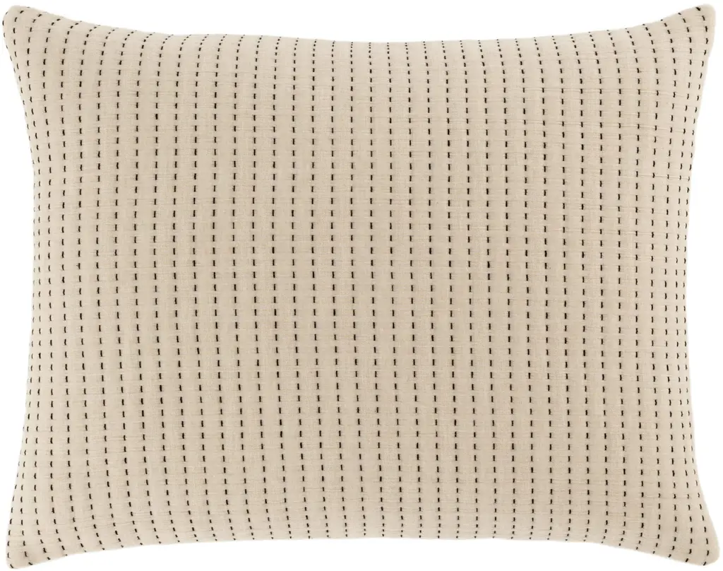 Precisely crafted parallel lines of White pick stitches make a graphic juncture with the Black matelassé weave. This lofty, lightweight all-cotton sham cover is meticulously woven to have pockets of warmth that deliver extra texture and coziness. An all-season essential to layer on the bed as needed. Reverses to same look as the front.