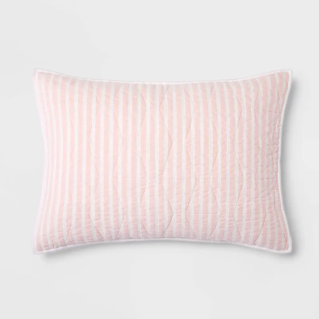 Pink Striped Waffle Weave Organic Cotton Kids Pillow Sham