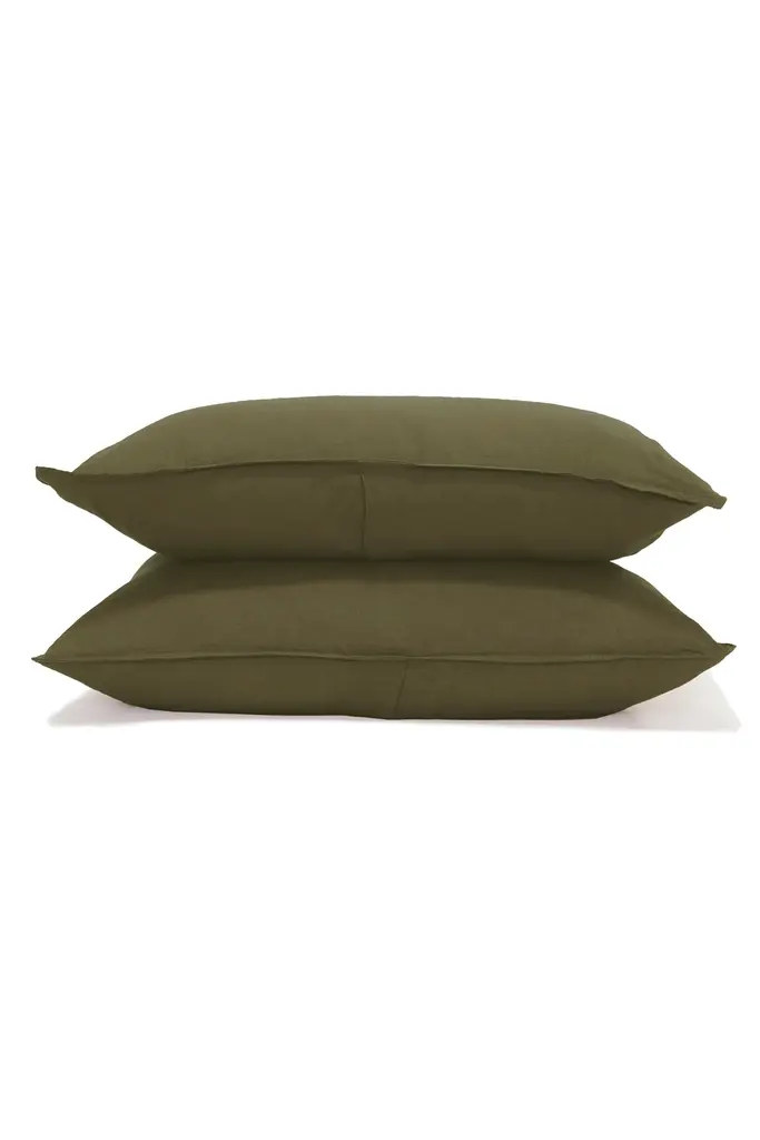 Perfect for a basic, clean, and beautifully pure look. All Parker pillow shams features shell button closures and 100% linen. Imbued with creator Hilde Leiaghat's romantic Belgian design instincts, LA-based Pom Pom at Home creates "lived-in elegant" collections crafted from the highest quality cotton and linen. 100% Linen Machine wash on delicate cycle; tumble dry low Do not bleach or dry clean Imported Forest color is a deep green; Navy color is a dark blue; Terra Cotta color is a muted orange; Sage color is a light green with a blue undertone Dimensions Standard: 20" x 27" (pair) King: 20" x 36" (pair) Euro: 26" x 26"