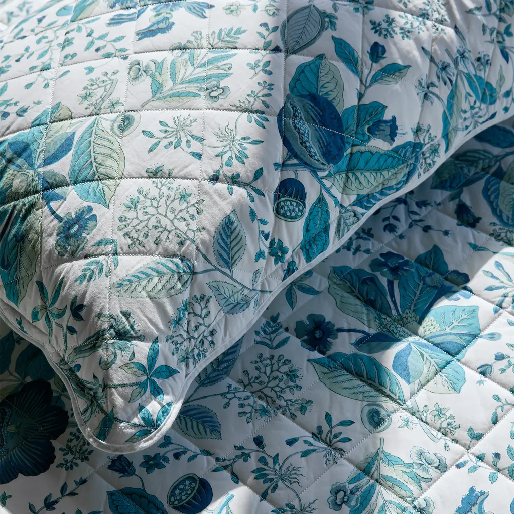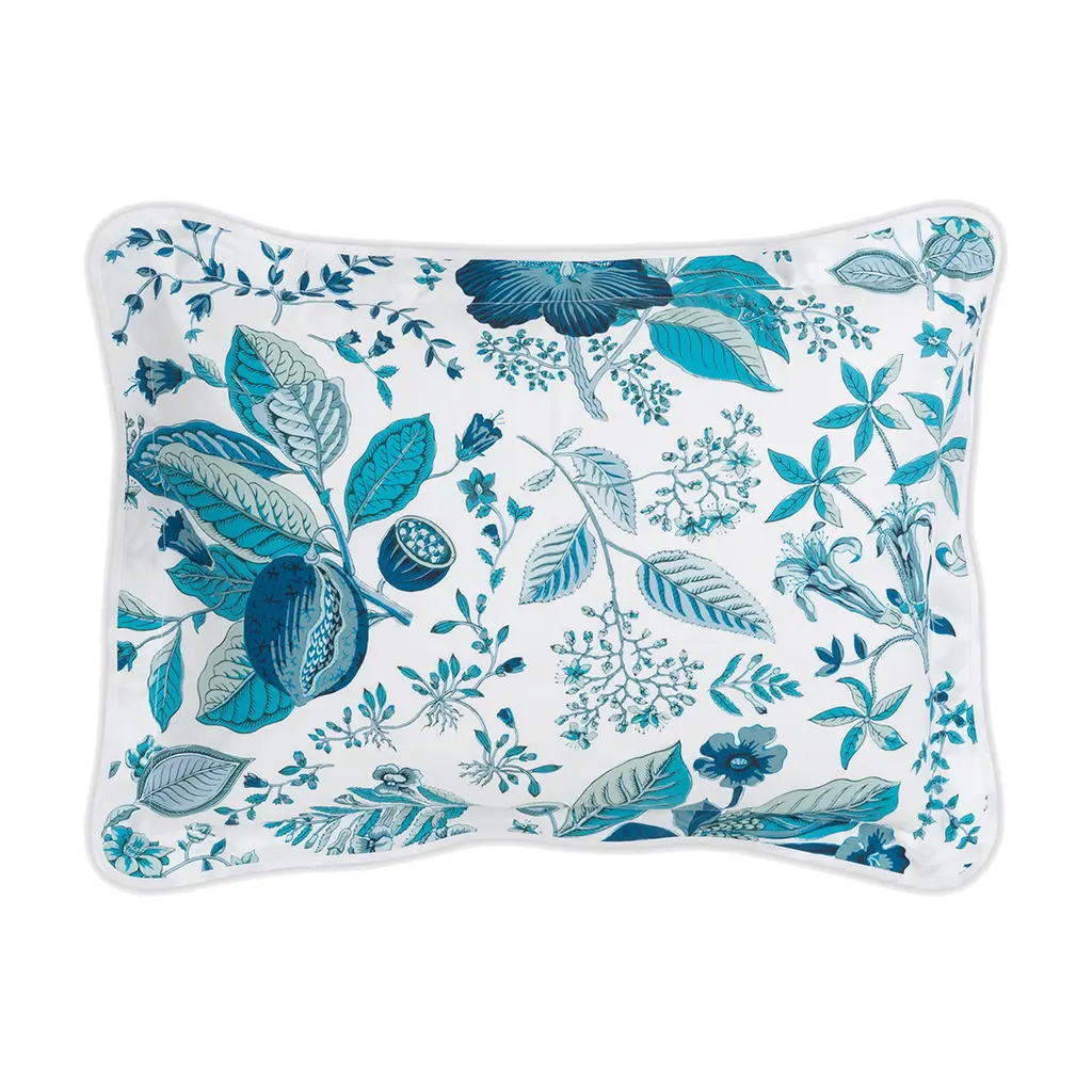 A vibrant expression of artistry and craftsmanship, this exquisite Pomegranate collection of Matouk bedding features an 18th-century botanical print from Schumacher's archive.