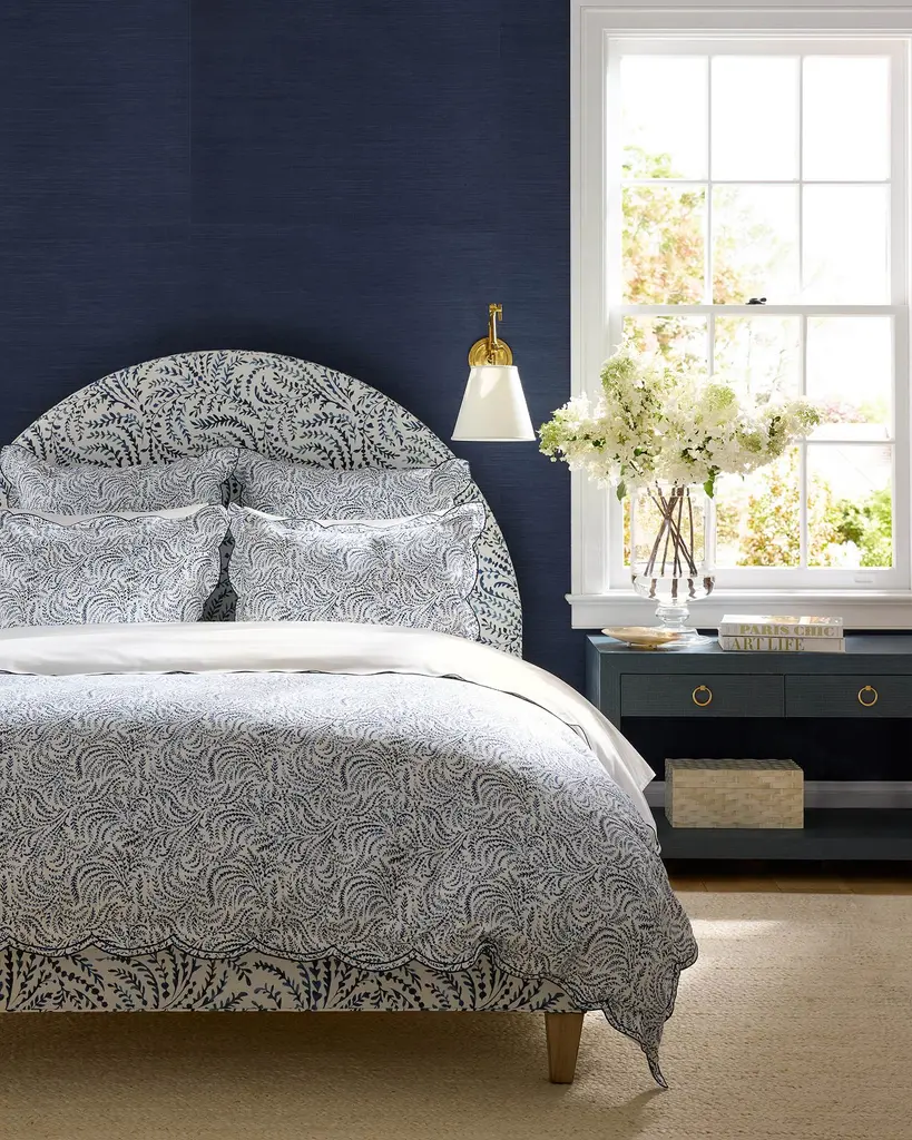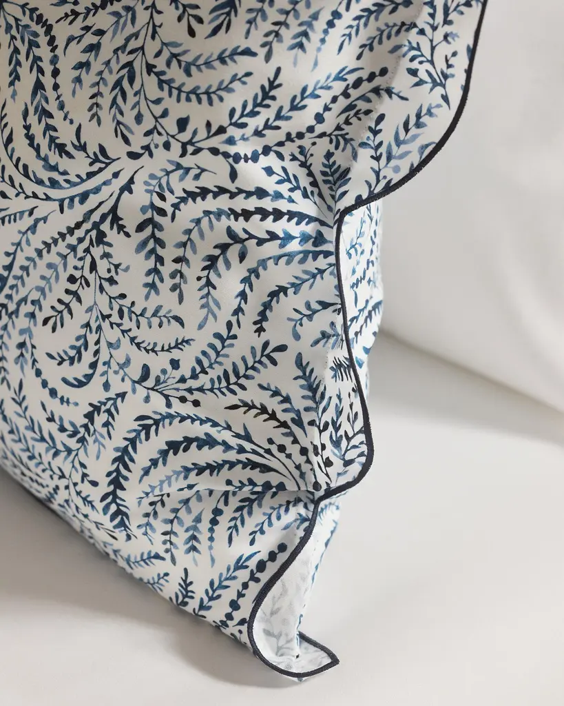 Homegrown. Our painterly pattern wends and winds over sateen. Wild and winsome with a scalloped trim.
