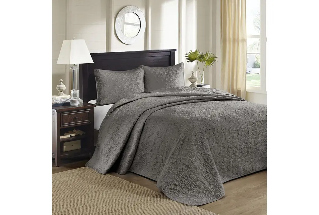 Queen Bedspread-Dark Grey Quebec Reversible 3 Piece Polyester Set With 1 Bedspread & 2 Standard Shams | Machine Washable