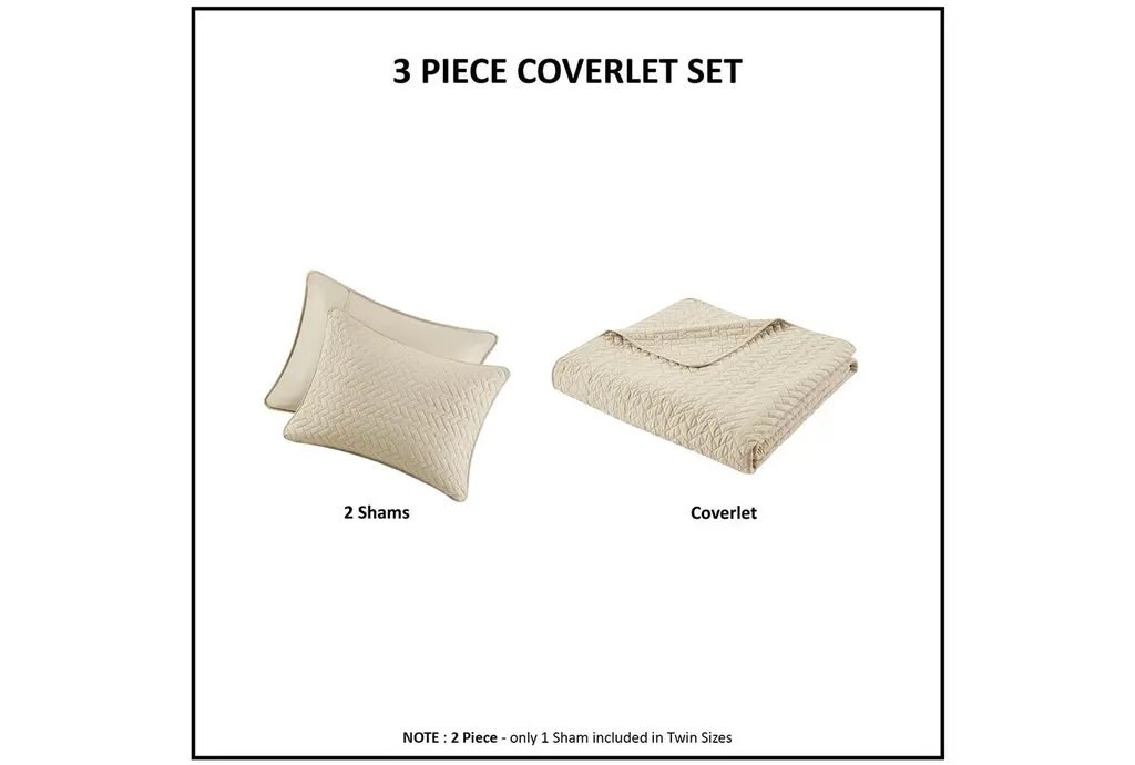 Queen Quilt-Linen Velvet Touch Polyester 3 Piece Set With 1 Quilt & 2 Standard Shams | Machine Washable
