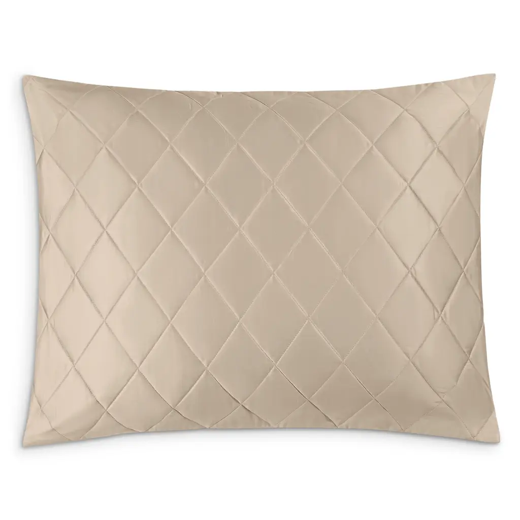 Perfect for bringing dimension to the bed, a diamond quilting pattern adds a delightfully textural touch to the neutral sage hue of this silk-and-cotton-backed silk charmeuse Euro sham. Poly-fill batting. Imported.