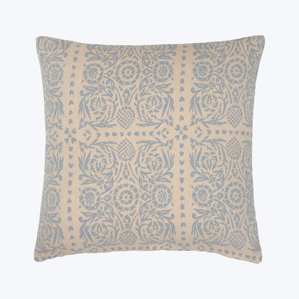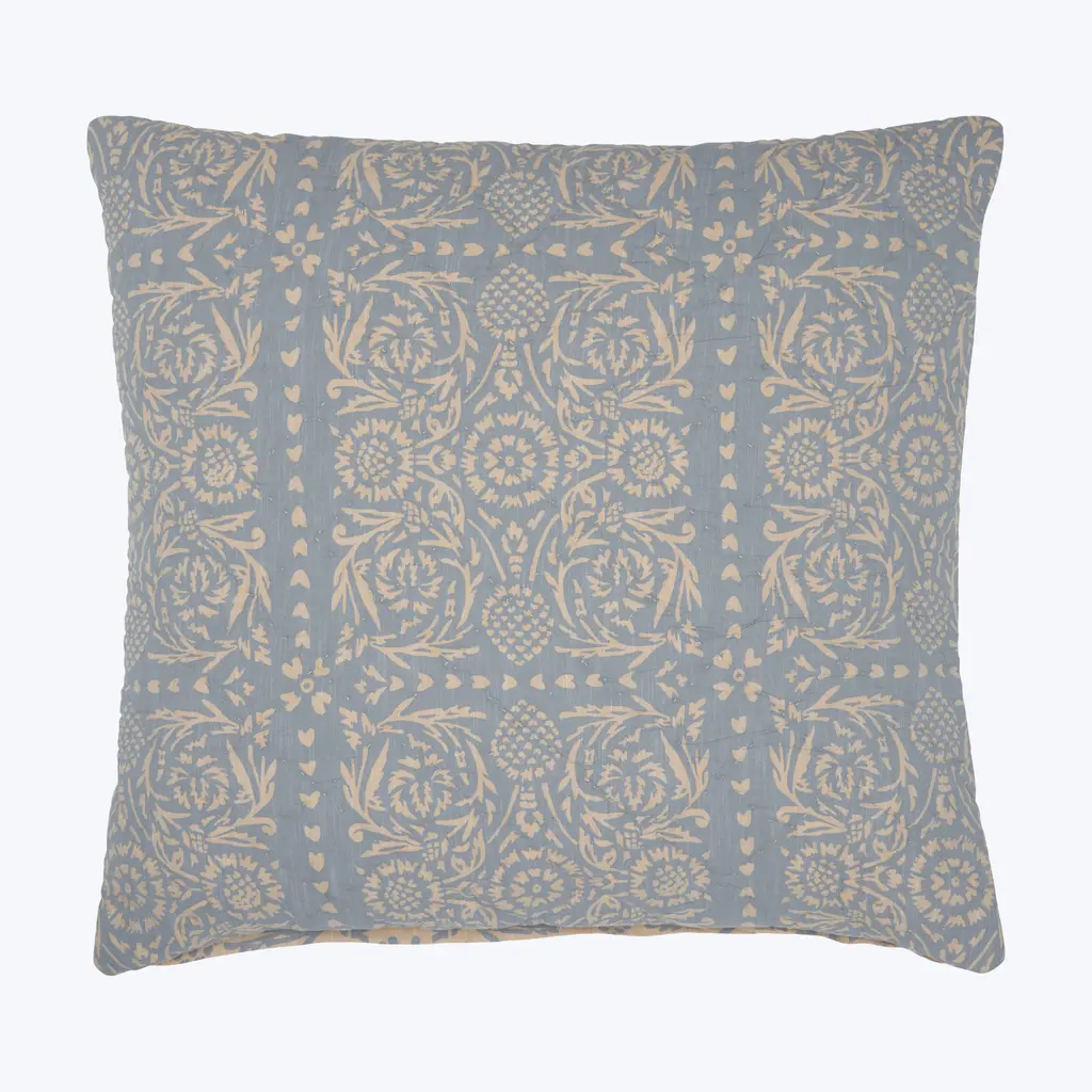 Discover the Raasia Woven Quilted Sham by John Robshaw. Hand-quilted on super soft cotton slub chambray, this beautiful sham’s whimsical pattern was inspired by antique painted tilework from Portugal. Available in Standard, King, and Euro sizes. Pair with the Raasia Woven Quilt.