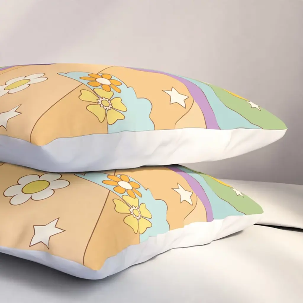 Retro Hippie Boho Rainbow Print Pillow Sham