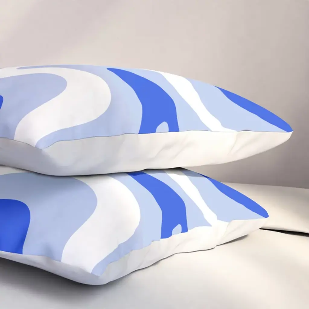 Retro Liquid Swirl Abstract Pattern Royal Blue, Light Blue, And White Pillow Sham