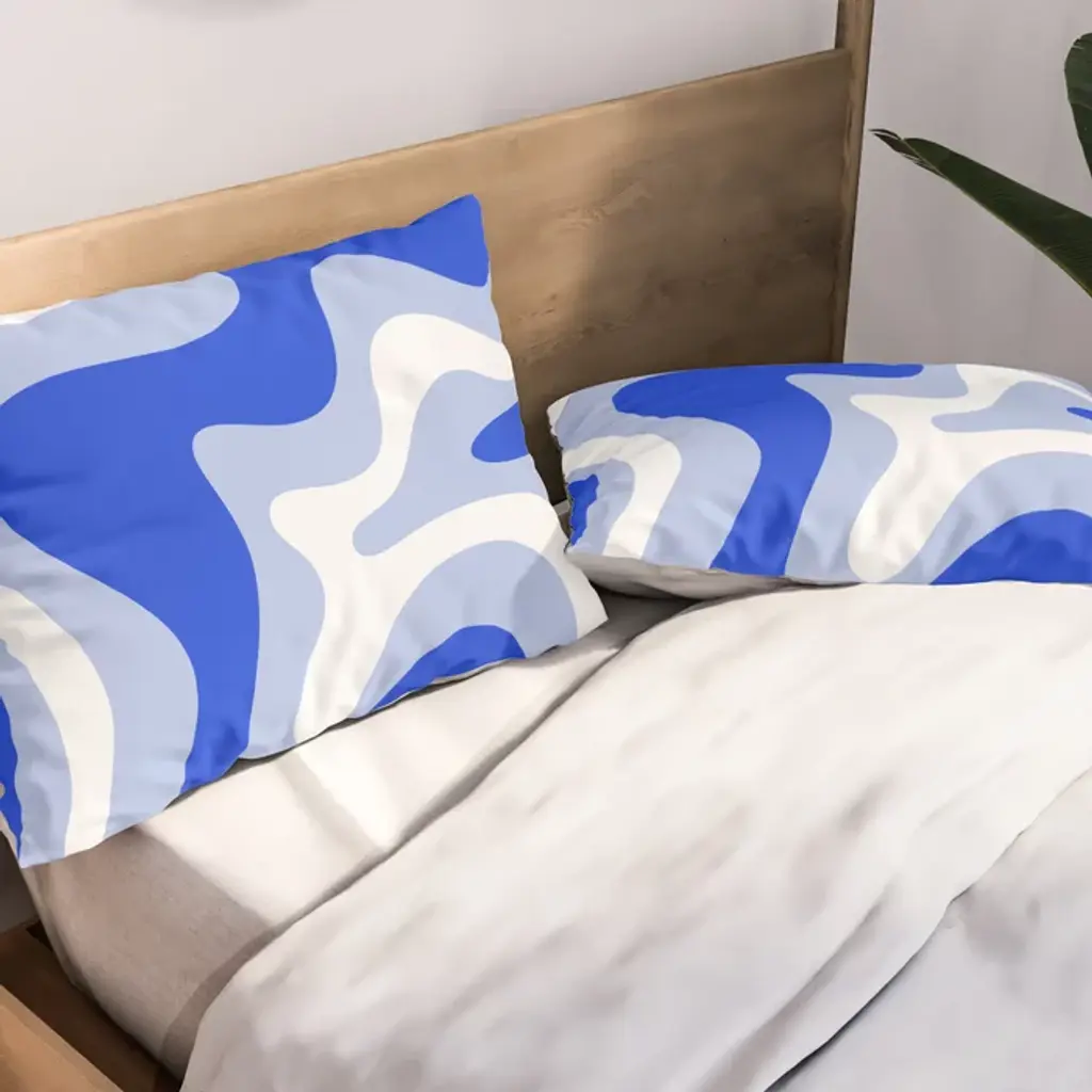 Retro Liquid Swirl Abstract Pattern Royal Blue, Light Blue, And White Pillow Sham