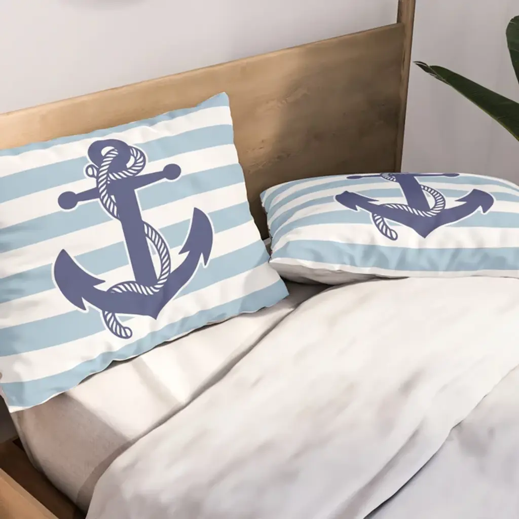 Retro Navy Anchor And Stripes Pattern 226 Blue Pillow Sham