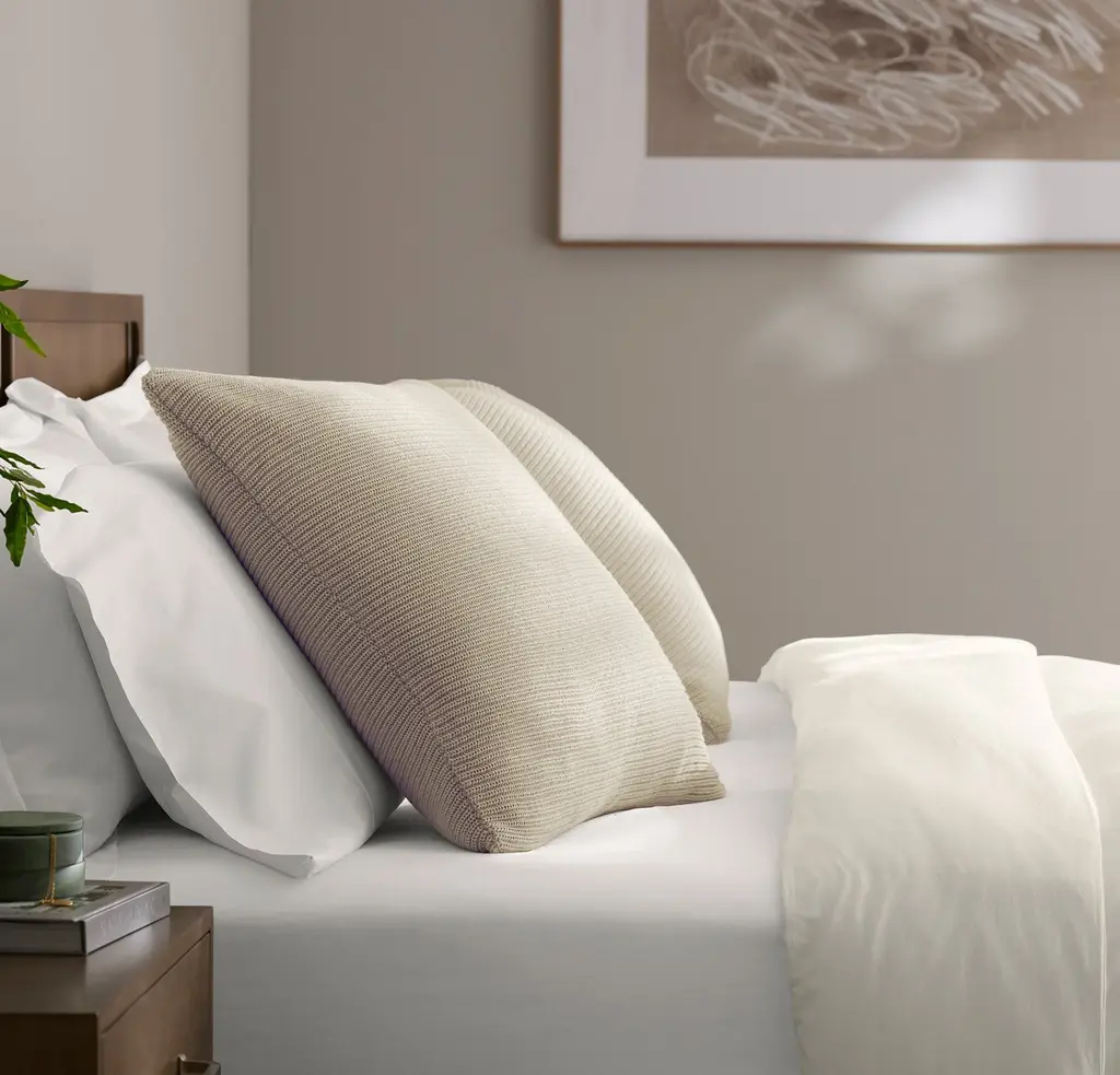 This sham completes your bed look with a modern-yet-cozy textured knit. It starts with the highest quality yarns sourced from the finest long-staple 100% organic cotton on earth. Each yarn is then luxuriously engineered in a ribbed pattern for a sumptuous, dimensional feel. The Feel Cozy, sumptuous, midweight knit The Look Modern ribbed pattern for dimensional texture