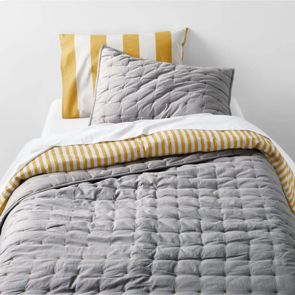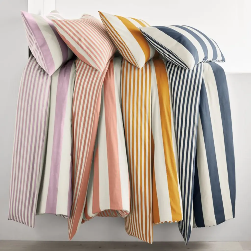 Give your kid's room some vacay vibes with the bold, cabana-style stripes of our Riviera Pillow Sham. The savannah yellow striped sham in organic cotton chambray offers a subtly textured, irresistibly soft feel that's still light and breathable. For a playful look, pair stripes with more stripes from our oh-so-fun Riviera bedding collection.