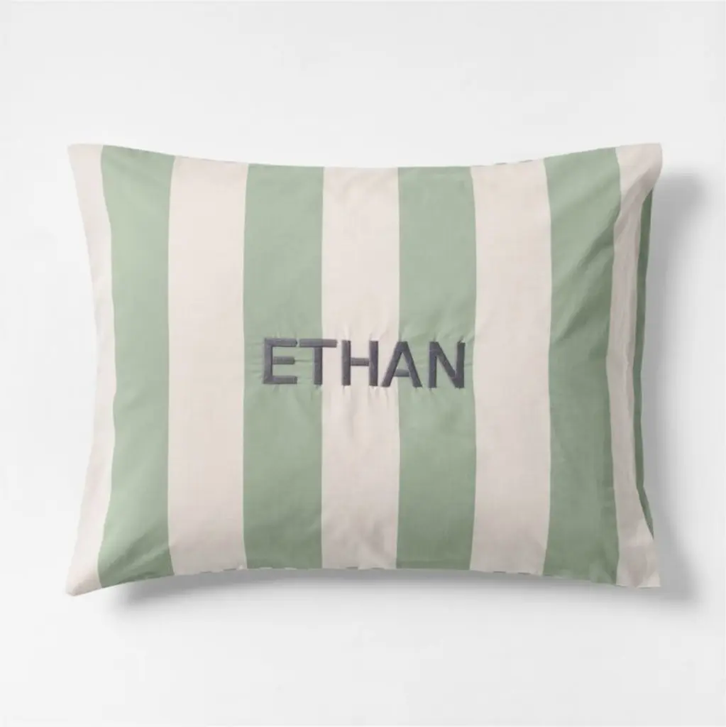 Riviera Stripe Verte Green Organic Cotton Kids Pillow Sham