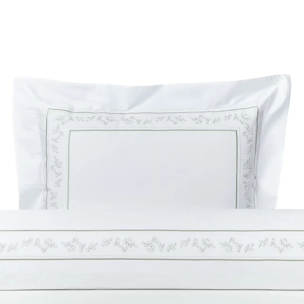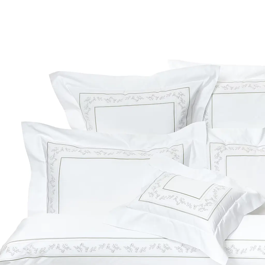 A design which never fades nor goes out of style. For those who dream their nights away basking in beauty. Its threads are made of super-fine gauge fibers woven into a crisp yet extremely soft product. Verderoccia sheets are made to dive in, sleeping is optional. A signature embroidery on the new Estremo percale, Made in Italy. 100% Egyptian Cotton. Each item is custom-made by Verderoccia. Customizable upon request.