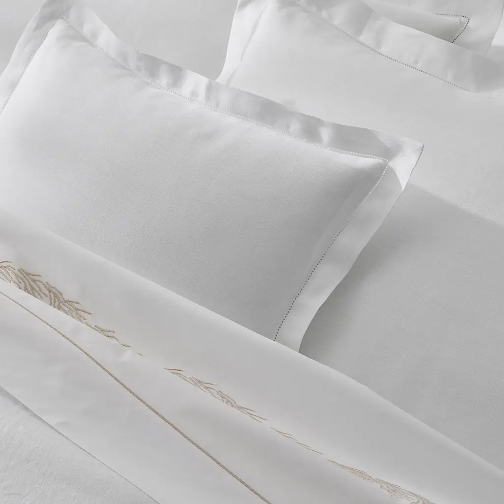 Crafted in the highest quality European linen, the Roman Hemstitch collection is a new core style in luxury bedding from Matouk. Its exceptionally soft feel is the result of a chemical-free finishing process developed in partnership with their expert Italian weavers. The signature hemstitch detailing is made in the Matouk factory in Fall River, Massachusetts and adds a clean, modern finish.