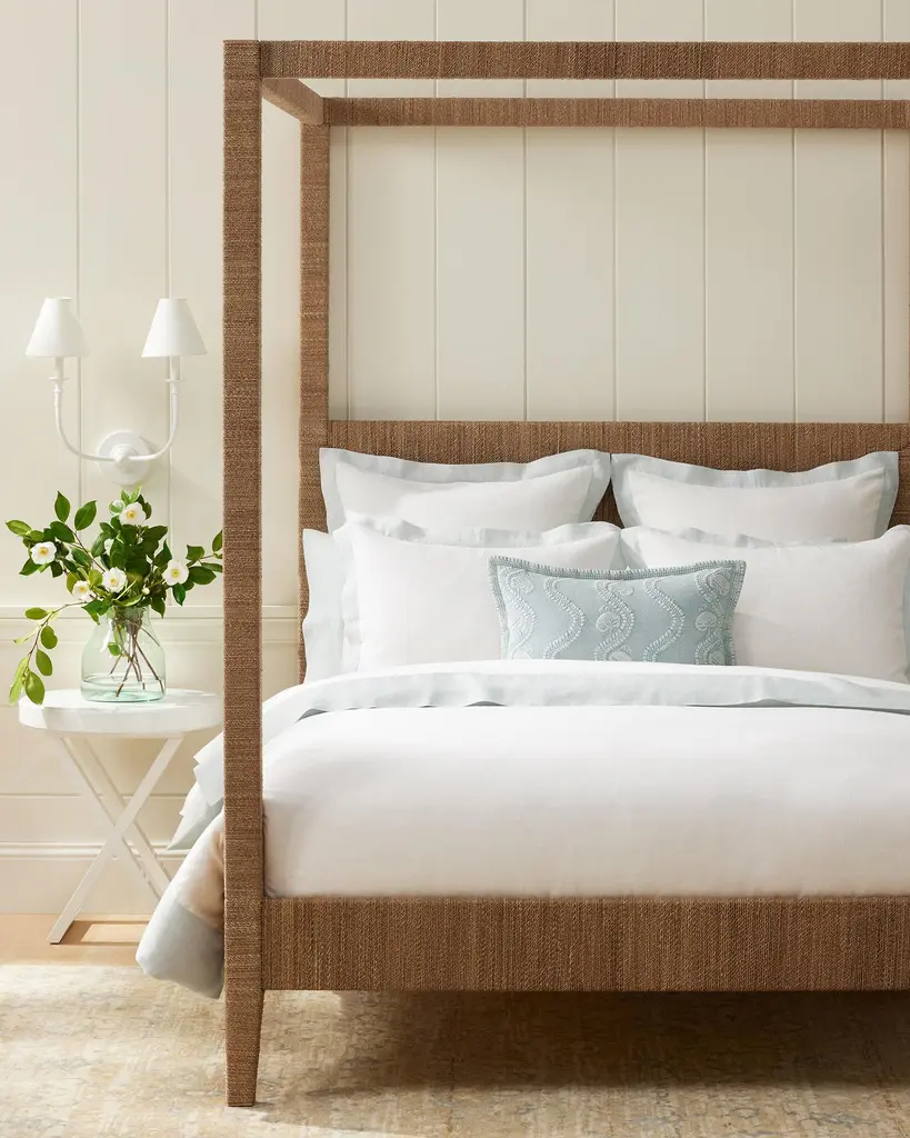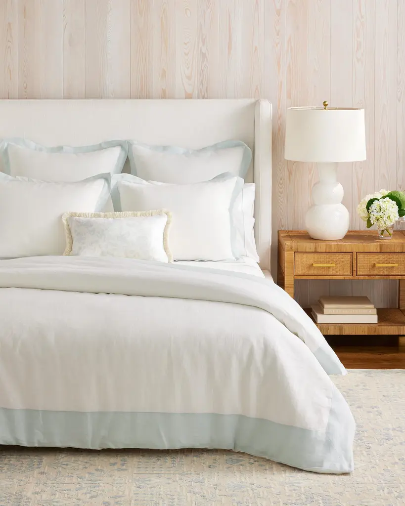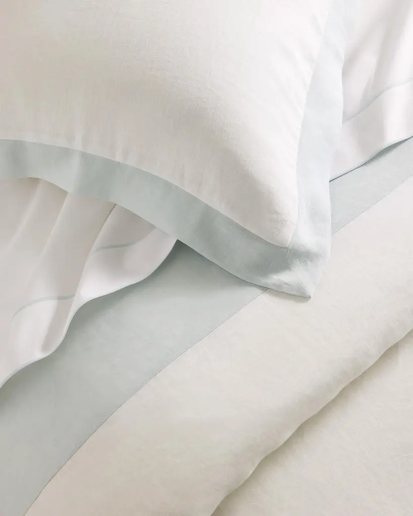 Broad strokes. Luxe linen with a flattering drape framed in colorful contrast.