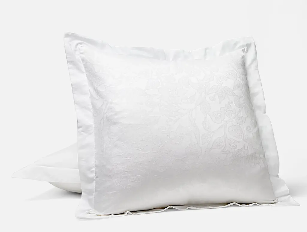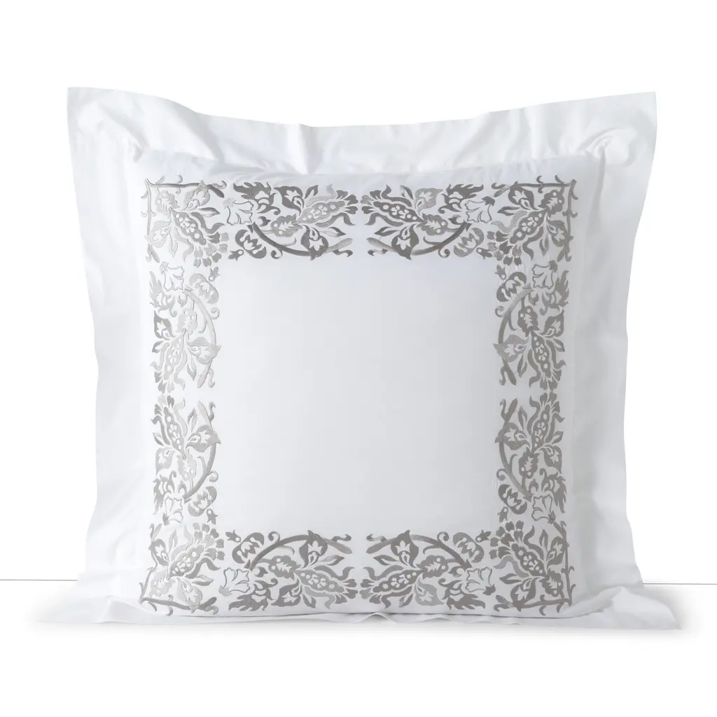 Plumes of the most lush and exquisite stitching decorate SFERRA's soft Italian Egyptian cotton percale Saxon collection, scripted like an ode to the Art Nouveau movement.