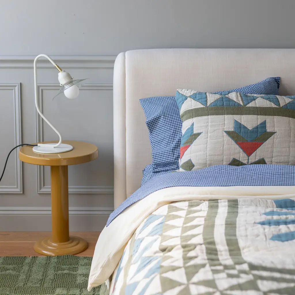 Nostalgic textiles are getting a fresh spin in the Windmill Cotton Sham. Designed in partnership with Portland-based painter Rachel Murray, who pulls inspiration from traditional quilting and folkloric motifs. Channeled cotton gives the sham a soft and textural feel, while a geometric pattern lends an artistic touch. Pairs with the Windmill Cotton Quilt.