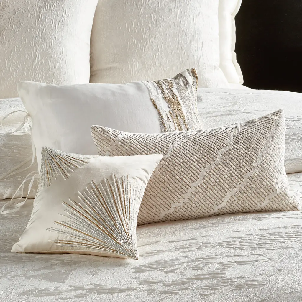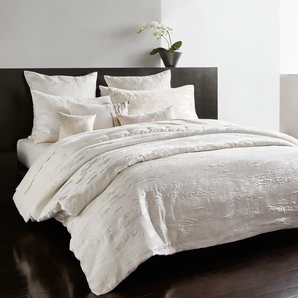 Delicate metallic threads are woven through a luxe jacquard pattern, bringing the allure of high standards to the Donna Karan Seduction Bedding Collection. The soft ivory color entices you to relaxing sleep.
