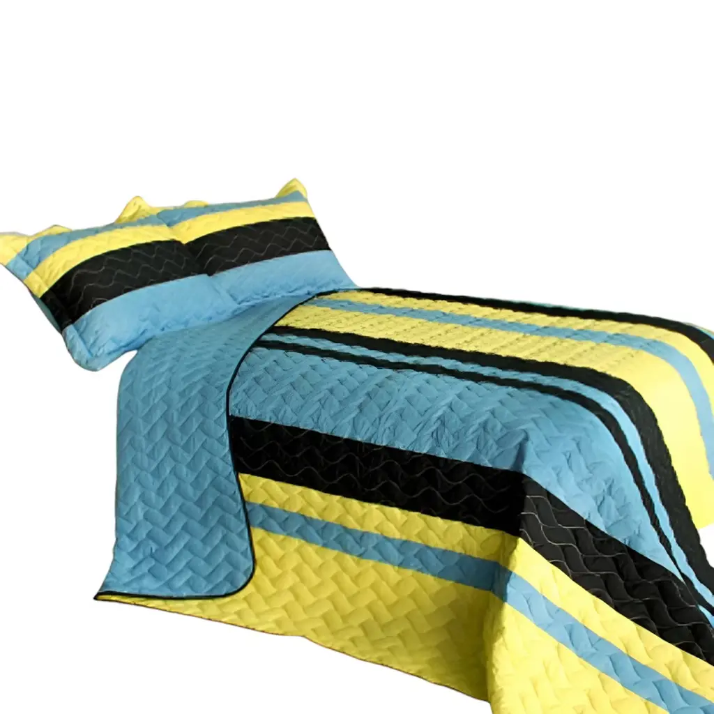 Slickblue 3 Piece Full/queen, Soft Vermicelli Quilted Quilt And Shams, Quilt Set, Vertical Stripes, Blue