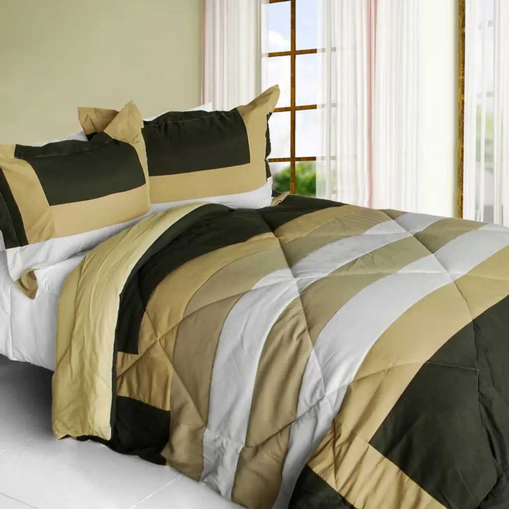 Slickblue Comforter & Sham Set, Soft Microfiber, Reversible Patchwork Quilt, Down Alternative Fill, Twin, Khaki