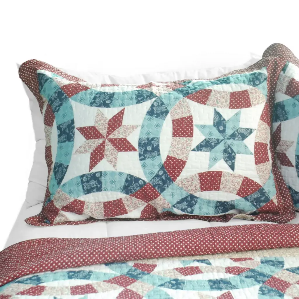 Slickblue Full/queen Cotton 3Pc Quilt Set, Vermicelli Quilted, Reversible, Includes 2 Shams, Double Ring