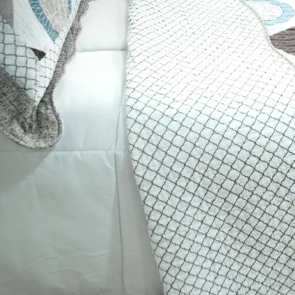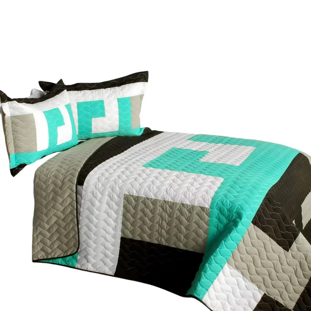 Slickblue Full/queen Cotton 3Pc Quilt Set, Vermicelli Quilted, Reversible, Includes 2 Shams, Geometric