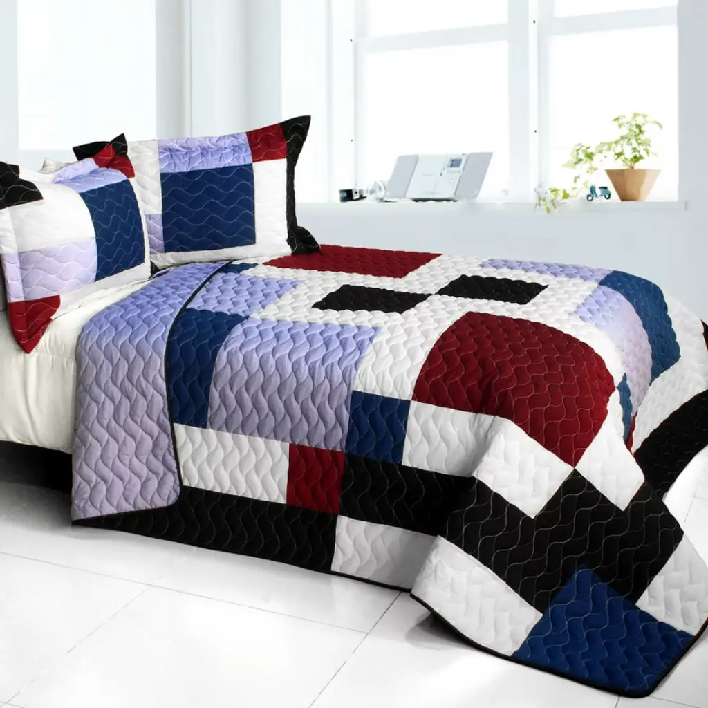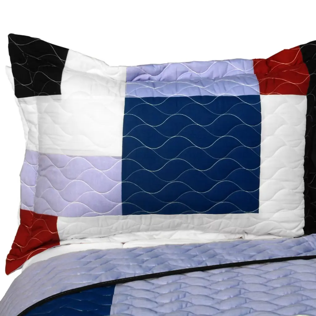 Slickblue Handmade Quilt Set, Vermicelli Quilting, Quilt & 2 Shams, Intricate Stitching, Full/queen, 3-piece