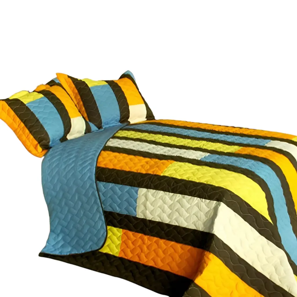Slickblue Handmade Reversible Quilt With Shams, Quilt Set, Horizontal Stripes 3, 3 Piece