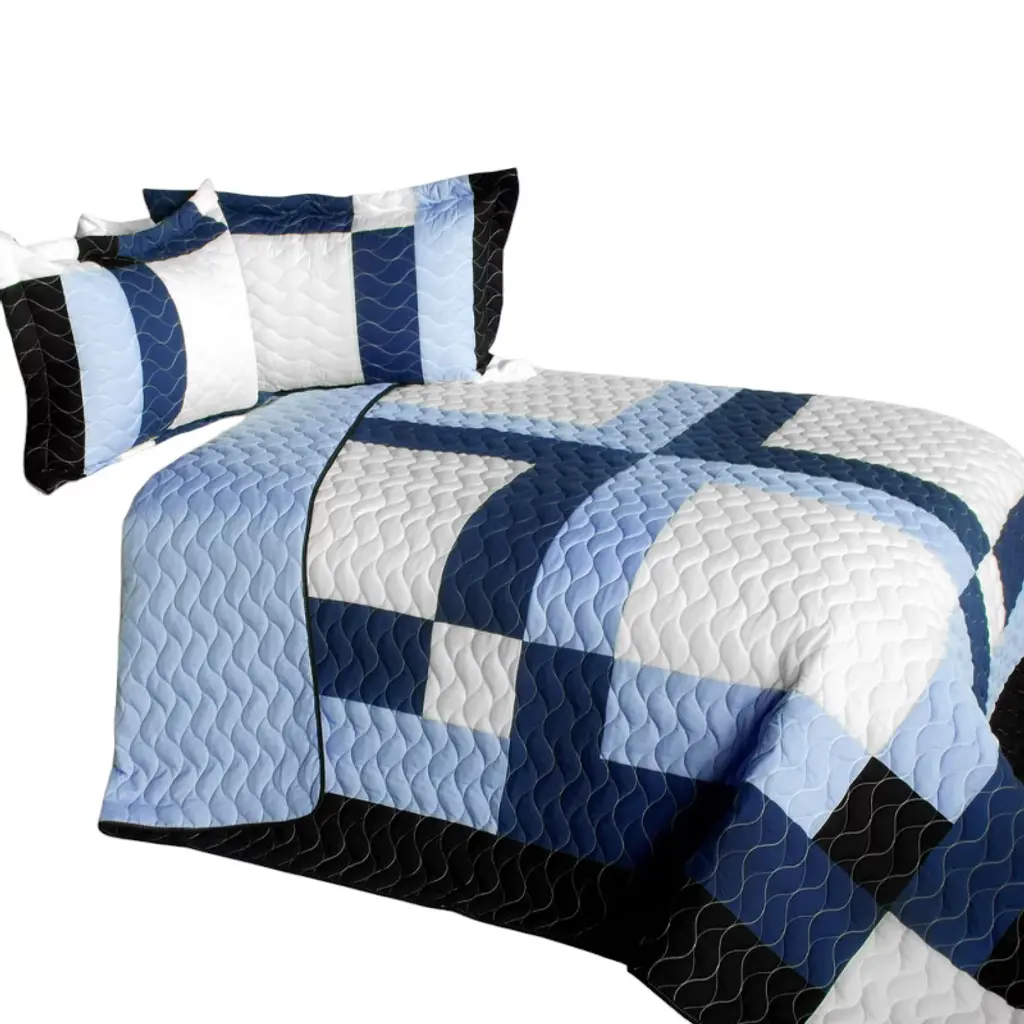 Slickblue Handmade Vermicelli-quilted Patchwork Quilt Set, Includes Standard Shams, Twin Bedding