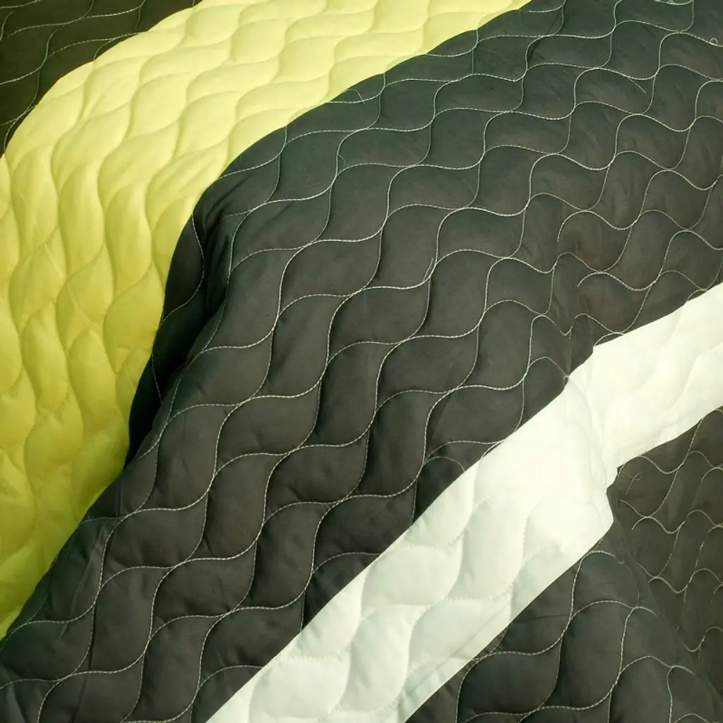 Slickblue Quilt Set Full/queen With 2 Shams, Pre-washed Reversible Bedding, Horizontal Stripes, 3 Piece, Black-yelow