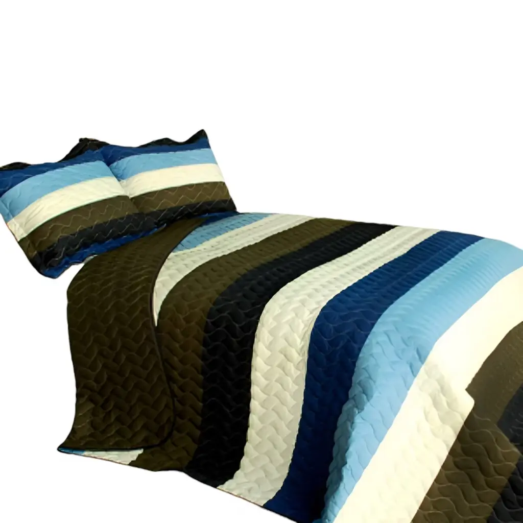 Slickblue Quilt Set Full/queen With 2 Shams, Pre-washed Reversible Design, Stripes Pattern, 3 Piece, Blue-white