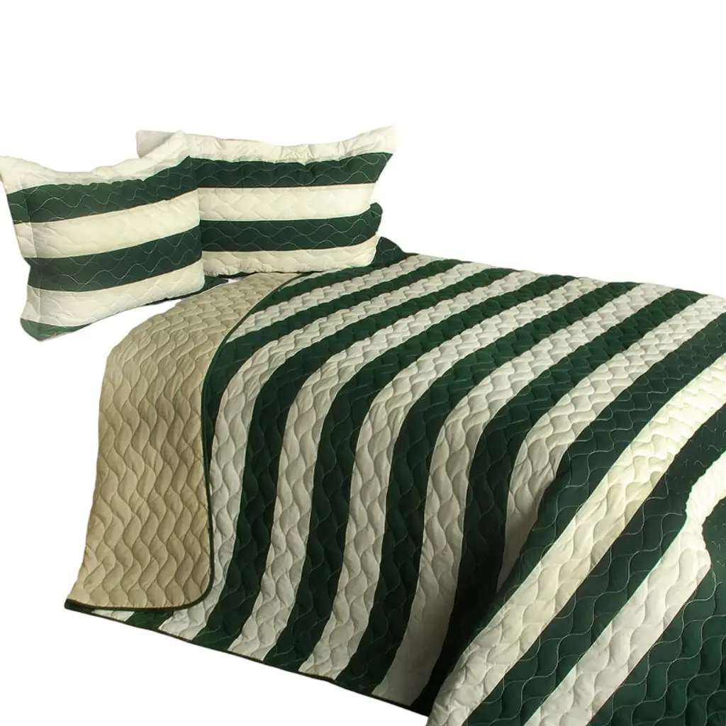 Transform your bedroom with this Full/Queen Size 100% TC Fabric Quilt Set, featuring a beautiful striped design in your choice of 7 different color options. This set includes one quilt and two quilted shams, all handmade with intricate stitching for a unique, artisanal touch. The vermicelli quilting provides rich texture and depth, making it both visually appealing and comfortable. Perfect for adding a cozy atmosphere, this quilt set is reversible, offering two distinct looks. Machine washable and dryer-friendly on low heat, this set is easy to care for and built to last. Whether you’re upgrading your own space or giving a thoughtful gift, this quilt set is sure to make a lasting impression.