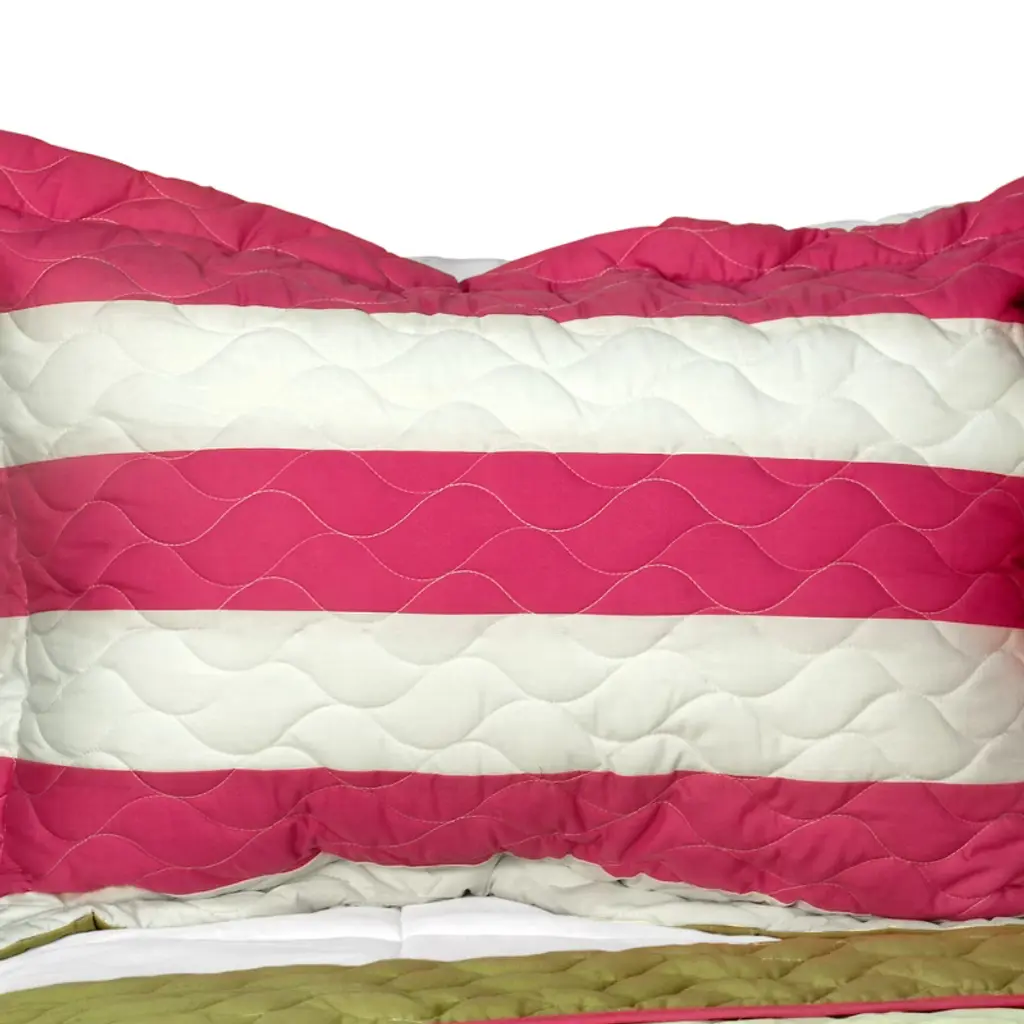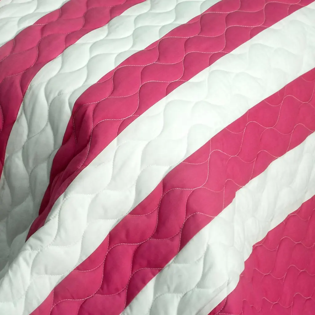 Slickblue Quilt Set Full/queen With 2 Shams, Pre-washed Reversible Design, Stripes Pattern, 3 Piece, Pink