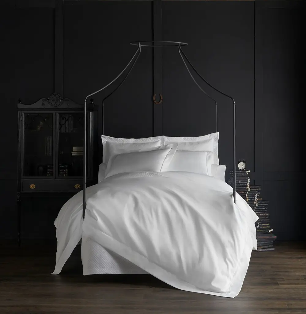 Soprano, our most popular sateen sheet, now beautifully crafted into a duvet cover. Customize your Soprano duvet to fit any style by selecting from an array of colors to feature on our signature satin stitch. 420 Thread count sateen sheeting. Features a single row satin stitch embroidery on the hem.