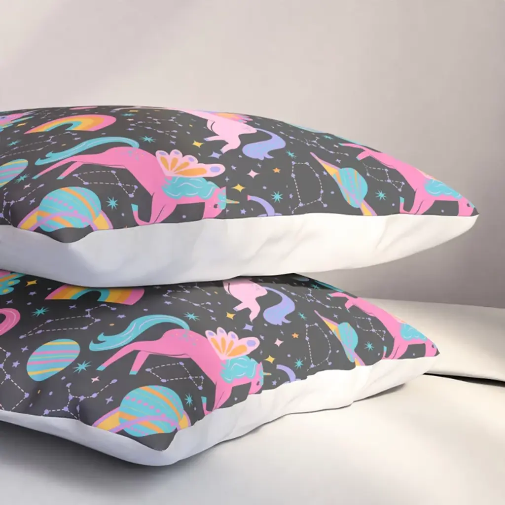 Space Unicorns - Neon Rainbow On Black Pillow Sham